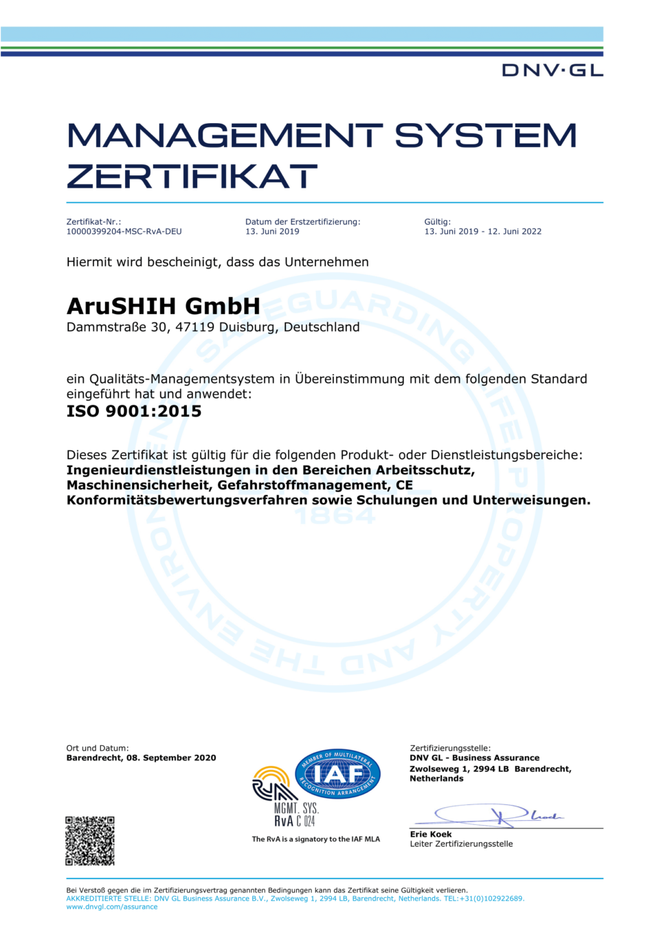 Die AruSHIH GmbH wurde 2012 von Dipl. Ingenieur Roland Stroba gegründet und hat sich in dieser Zeit erfolgreich in ihrem Kerngeschäft des Arbeitsschutzes, der Maschinensicherheit, besonders BetrSichV, und der Unterstützung bei der Erstellung von CE-Konformitätserklärungen etabliert.